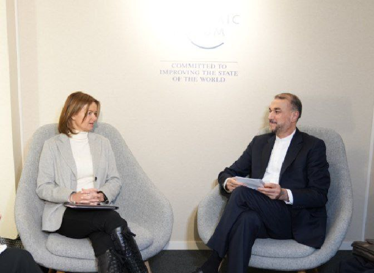 دکتر امیرعبداللهیان وزیر امور خارجه کشورمان در حاشیه اجلاس مجمع جهانی اقتصاد در داووس سوئیس، با خانم تانیا فایون وزیر خارجه اسلوونی دیدار و گفت و گو کرد.
