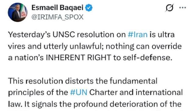 دکتر عراقچی: سوال من این هست. ما قطعنامه 2231 را داریم که در 18 اکتبر 2025 منقضی می‌شود. در این تاریخ مکانیسم ماشه فعال می‌شود و قطعنامه پیشین فعال می‌شود مخصوصاً قطعنامه 1929. سوال من این هست که چه تفاوتی ایجاد می‌شود. آیا قطعنامه فعلی شورای امنیت توانست از ما در برابر عملیات نظامی محافظت کند؟ نه. آیا توانست از ما در برابر تحریم‌های آمریکا محافظت کند؟ نه. پس چه فایده‌ای دارد؟ اروپایی‌ها فکر می‌کنند که این‌یک اهرم فشار در دست آن‌هاست، اما این‌طور نیست.