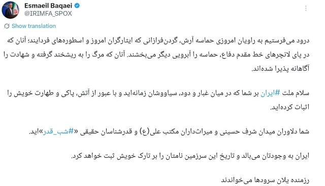 دکتر عراقچی: تجاوز متوقف شده است و متقابلا حق دفاع ما نیز متوقف شده است. همین. هیچ توافق آتش‌بسی وجود ندارد، هیچ چیز دیگری وجود ندارد. آنها بدون هیچ شرطی تجاوز را متوقف کردند و ما نیز دفاع را متوقف کردیم. وقتی تجاوزی وجود ندارد، طبیعتاً دلیلی برای دفاع از خود وجود ندارد. بنابراین ازآنجایی‌که آنها بدون هیچ شرطی درخواست توقف حملات را کردند، ما پذیرفتیم.