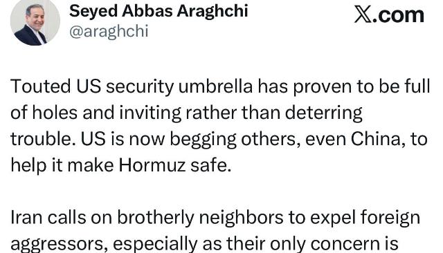 دکتر عراقچی: همه چیز می‌تواند از سر گرفته شود. آنها می‌توانند از سر بگیرند، ما می‌توانیم از سر بگیریم. هیچ آتش‌بس رسمی وجود ندارد و همه چیز ممکن است و فقط ایران نیست که باید نگران و دلواپس باشد.
