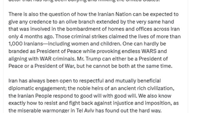 عدم اجرای معاهده و عدم تامین حقابه هیرمند از سوی افغانستان و صدور بیانیههای سیاسی بدون اقدام عملی، به هیچ وجه قابل قبول نیست و جمهوری اسلامی ایران حقوق خود را برای اتخاذ تدابیر لازم محفوظ دانسته و بر مسئولیت کامل افغانستان در این خصوص تاکید دارد.