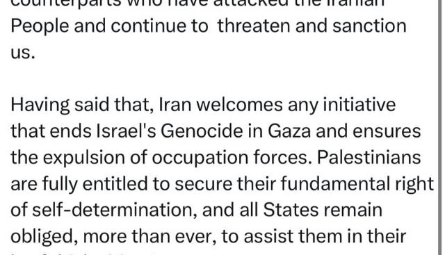 پیام سید عباس عراقچی وزیر امور خارجه جمهوری اسلامی ایران در شبکه ایکس