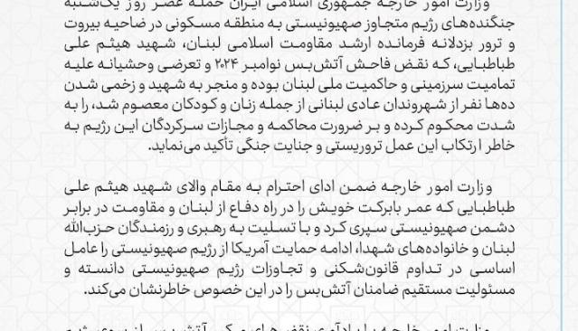 تاکید میکنم که کشتار غیرنظامیان بیگناه بهویژه زنان و کودکان باید فوراً متوقف شود. جنگ راه حل نیست؛ امنیت را نمیتوان با توسل به زور و ارتکاب نسلکشی در غزه به دست آورد.