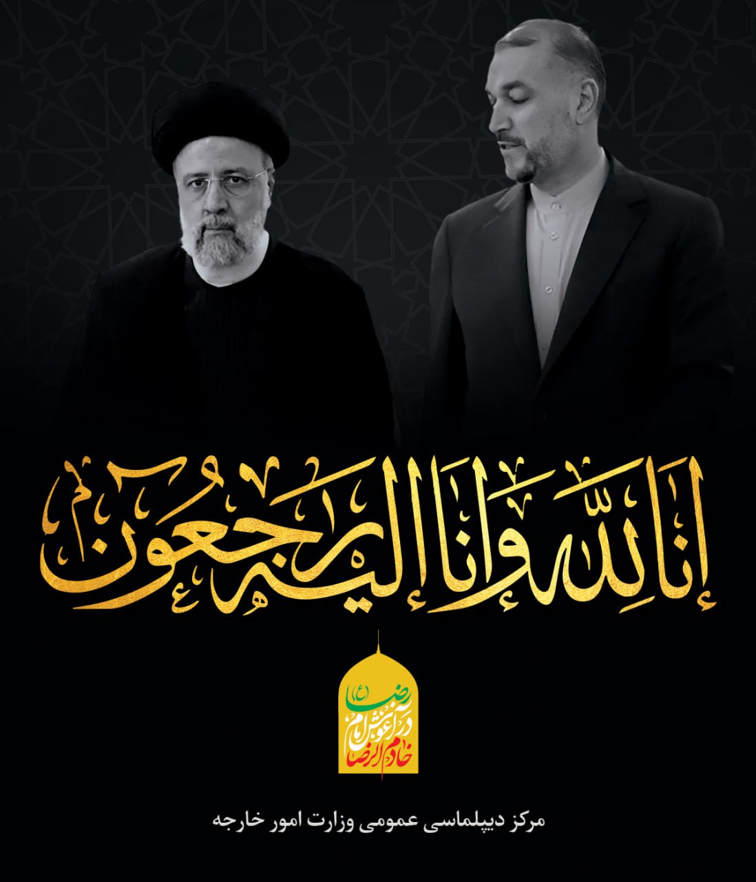 وزارت امور خارجه جمهوری اسلامی ایران برای ارواح بلند رئیس جمهور، وزیر امور خارجه و همراهان شهید آنان علو درجات نزد خدای سبحان و برای خانوادههای محترم آنان صبر و شکیبائی مسئلت مینماید.