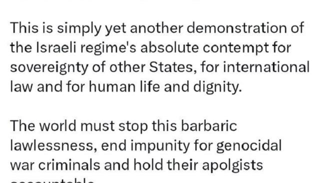 نیروهای مسلح قدرتمند ما به جهان نشان خواهند داد جنایتکاران جنگی که در پناهگاههای تلآویو پنهان شدهاند، تقاص جنایات خود را خواهند داد. ما تا هر زمان که لازم باشد به سرکوب این بزدلان ادامه خواهیم داد تا اطمینان حاصل کنیم که آنها دیگر مردم ما را هدف قرار نمی دهند.