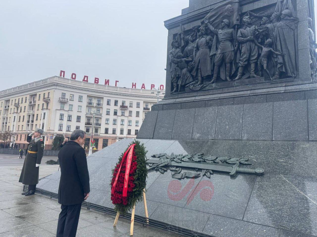سید عباس عراقچی وزیر امور خارجه جمهوری اسلامی ایران با حضور در محل یادمان پیروزی در مینسک با اهدای تاج گل به کشته‌شدگان جنگ جهانی دوم ادای احترام کرد.