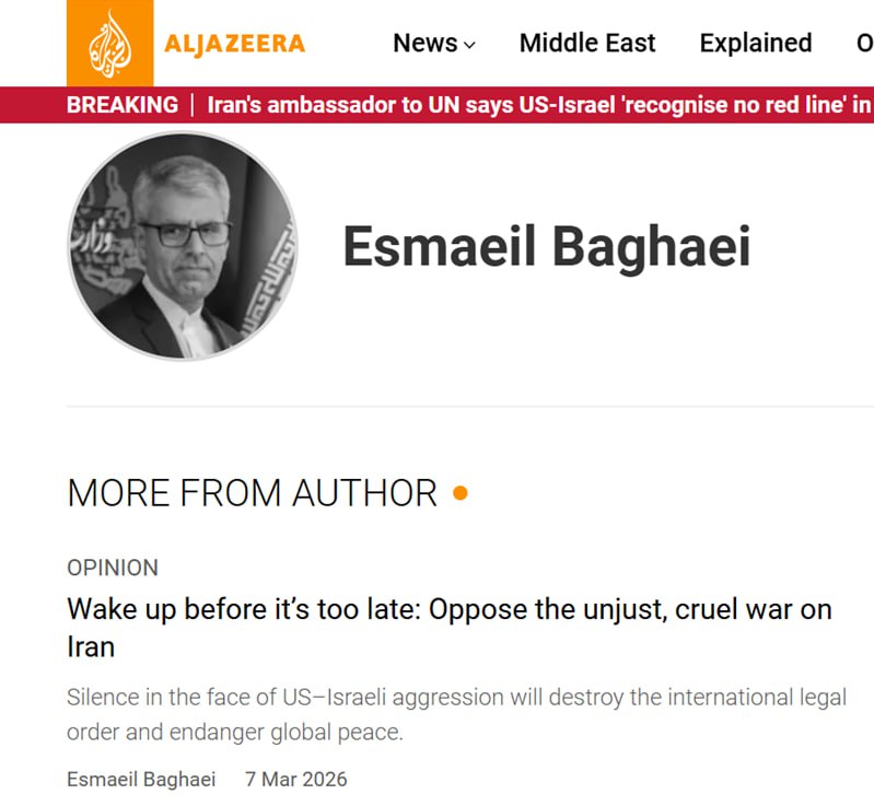 ✍🏻 یادداشت اسماعیل بقائی سخنگوی وزارت امور خارجه در پایگاه شبکه الجزیره انگلیسی: