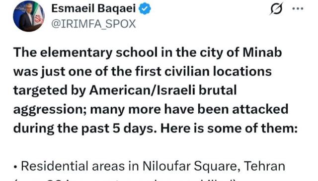اسماعیل بقائی سخنگوی وزارت امور خارجه با بازنشر پیامی از صفحه ایران ایر طی پیامی در شبکه ایکس نوشت: