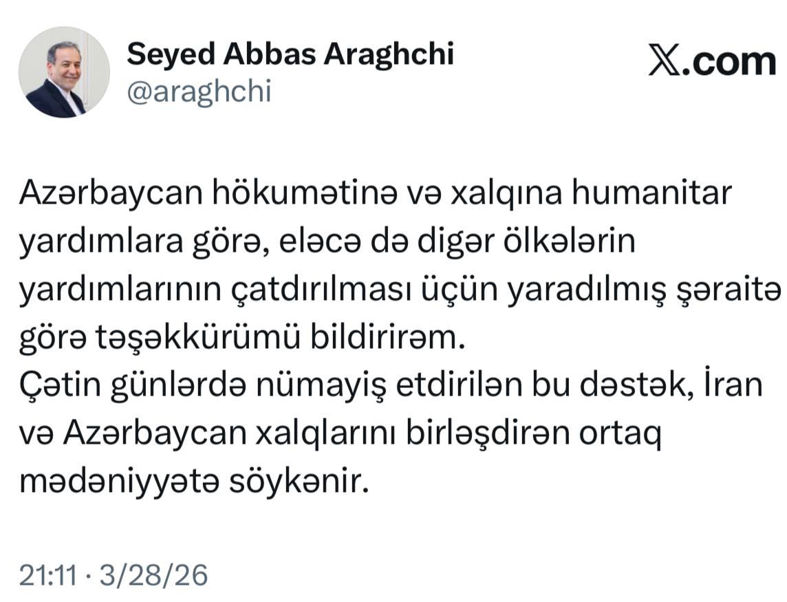 ️ قدردانی سید عباس عراقچی وزیر امور خارجه از دولت و مردم جمهوری آذربایجان