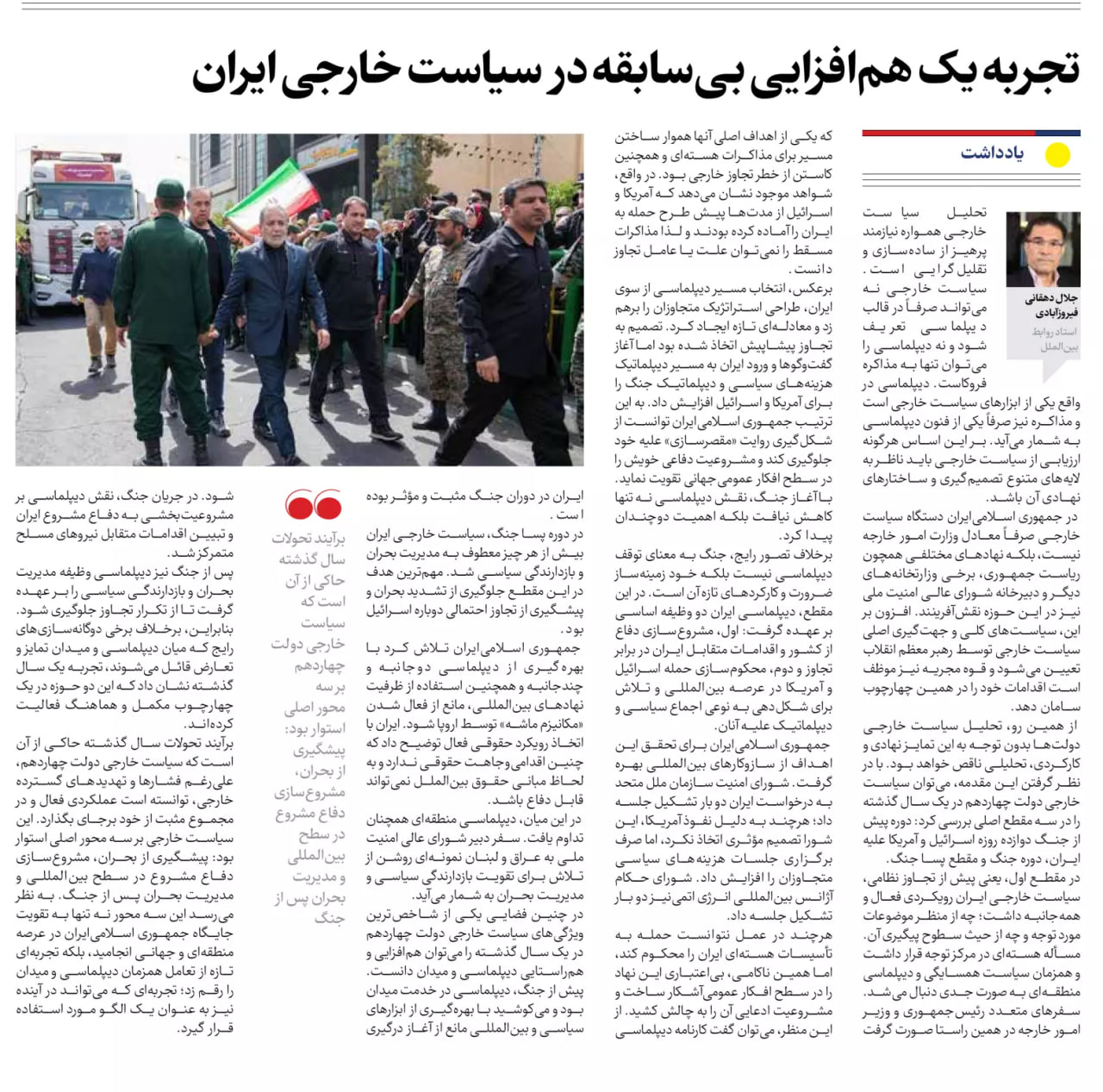 تجربه یک هم‌افزایی بی‌سابقه در سیاست خارجی ایران جلال دهقانی فیروزآبادی استاد روابط بین‌الملل